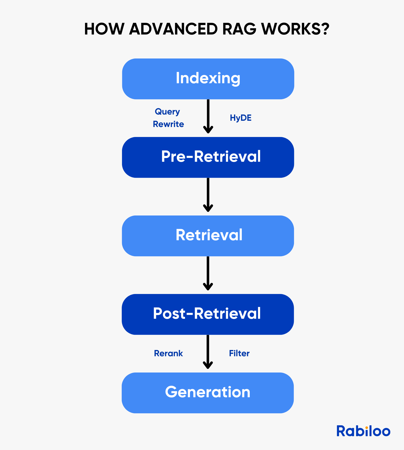 기본 RAG 방식에서 검색전, 검색중, 검색후 과정이 추가됨